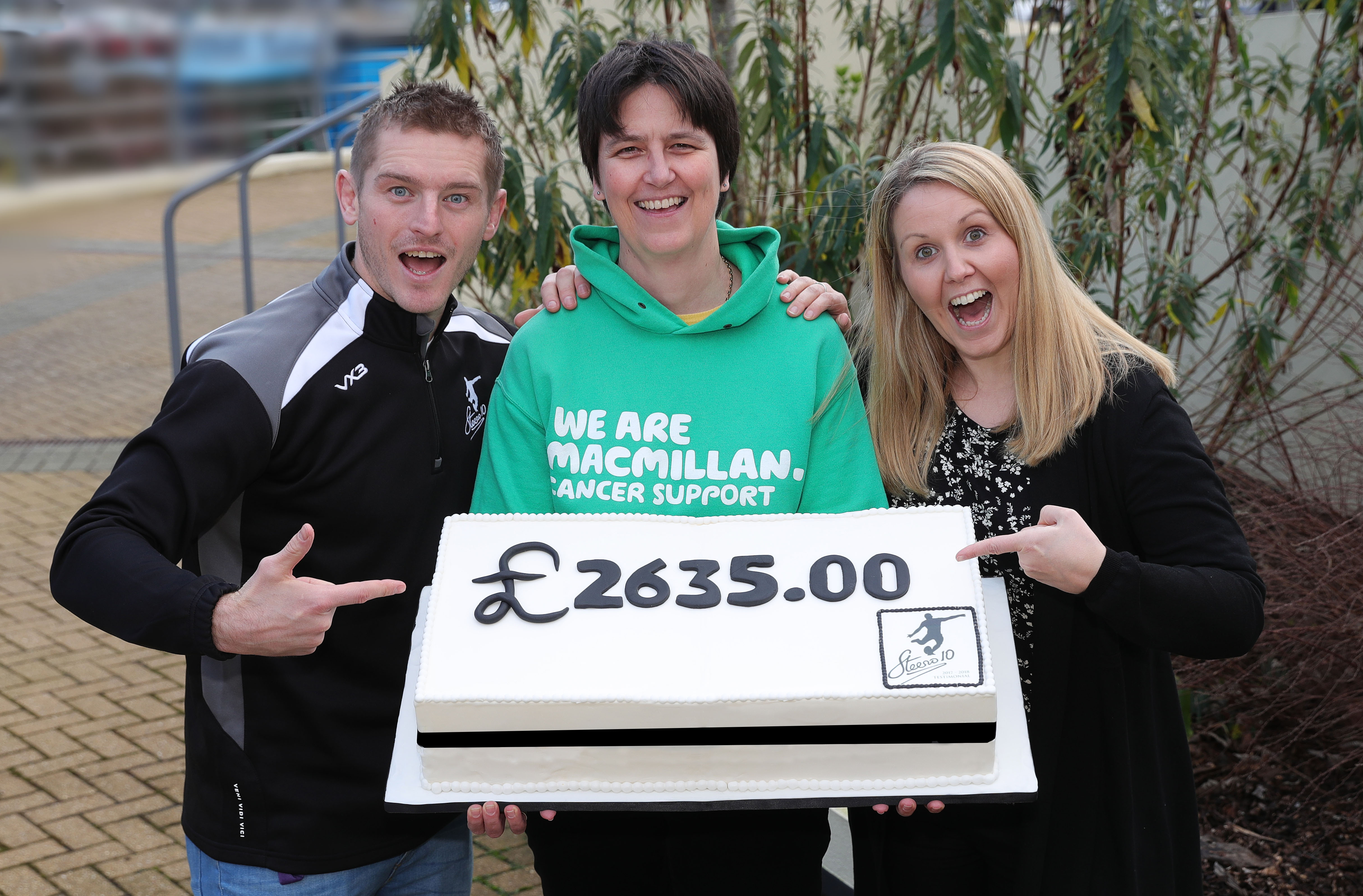 Presenting the money to Macmillan, in the form of a giant cake, Gareth said: “The support and care that both my father and family received from the Macmillan Nurses was invaluable and we will be forever grateful to those kind people who helped us through the hardest times of our lives.”