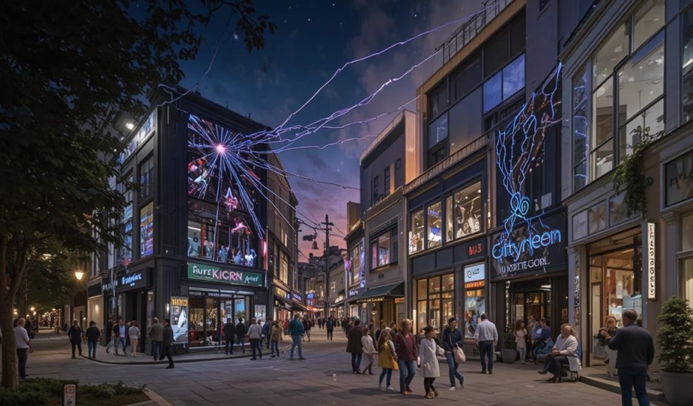 Here, neon becomes part of storytelling — not through words, but through atmosphere.
