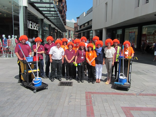 Members of the Princesshay team wore bright orange wigs on Friday 26 July in an effort to raise awareness and money for the MS Society’s Challenge60 fundraising event. Security guards, car park attendants, cleaners and centre management staff all took part.