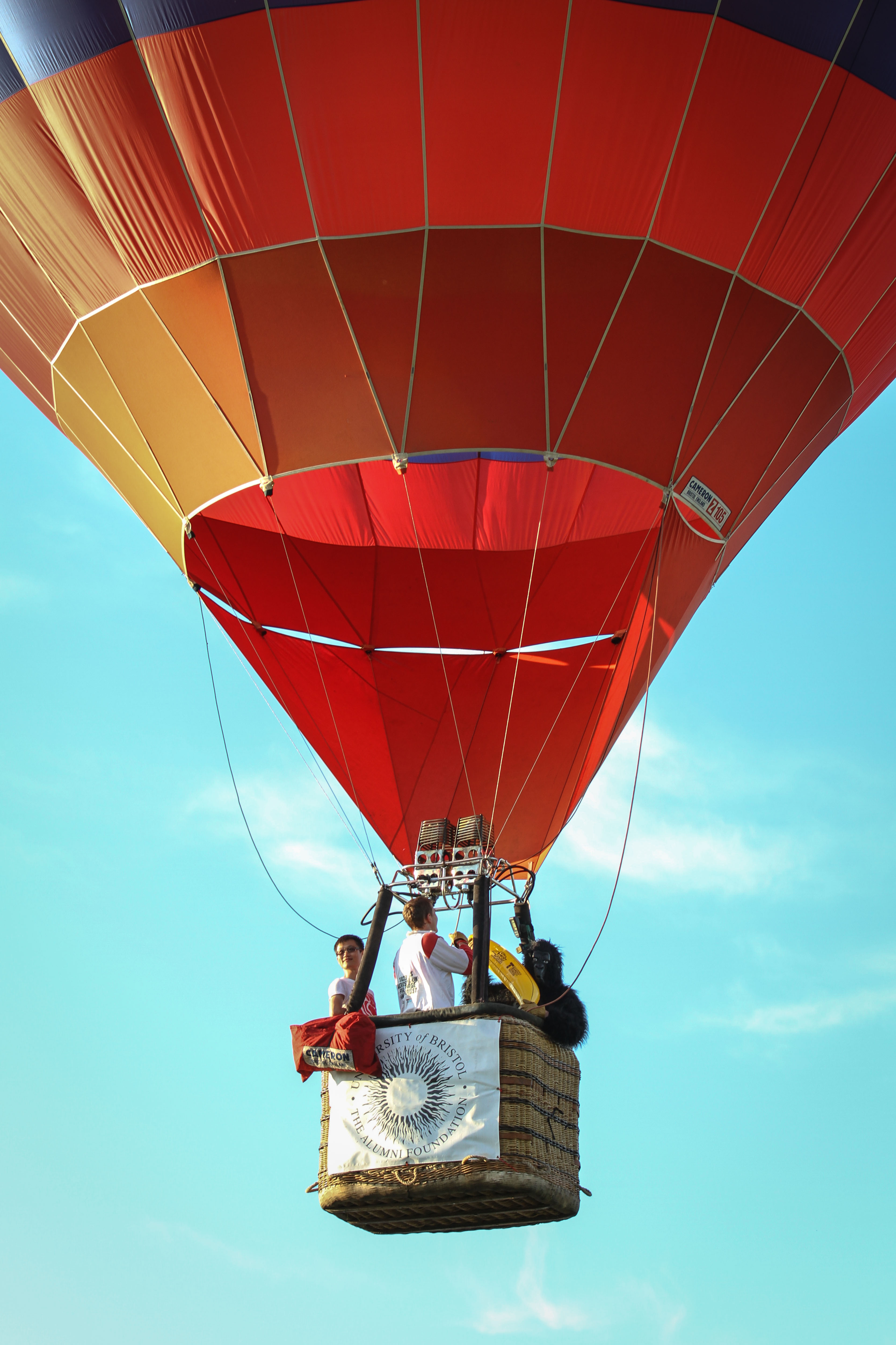 Dressed as gorillas, the team transported the ‘Big Banana’ from Exmouth across to Starcross by ferry where they continued by mountain bike to the Tiverton Balloon Festival, where it ascended to 1,000 feet in a hot air balloon. From there the team travelled by ferry again from Weston Super Mare to Cardiff where it was picked up by the Go Ape Margam Country Park team.