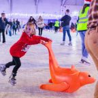 Stand out figures include a tightly clad Lady in Black holding two mobile phones, representing aggressive consumerism, whilst water flows from Elvis’s mouth and a large bear sits near the centre, portraying a wild emotional vision of the world. Airborne weapons of war hover over the skyline whilst Perry’s much loved teddy, Alan Measles, sits in the pupil of the eye at the centre of the tapestry.