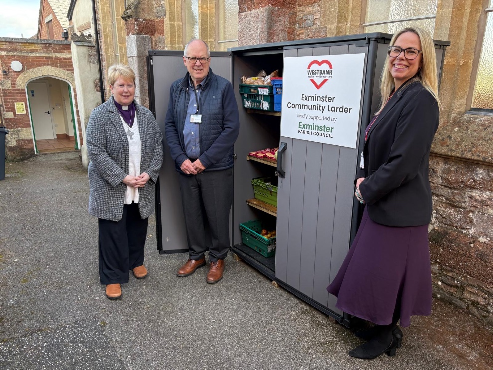 Exminster’s Community Larder, provided by local health and wellbeing charity Westbank Community Health and Care, has a new weatherproof home thanks to a £200 grant from Exminster Parish Council. The money has enabled Westbank to purchase a waterproof unit to house a Community Larder that’s open 24/7 next to Exminster Methodist Church.