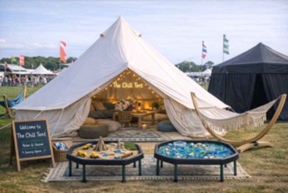Delivered by North Devon-based organisation SEND the Help CIC, The Chill Tent provides a thoughtfully designed, non-clinical environment for individuals who may experience overwhelm in busy event settings.