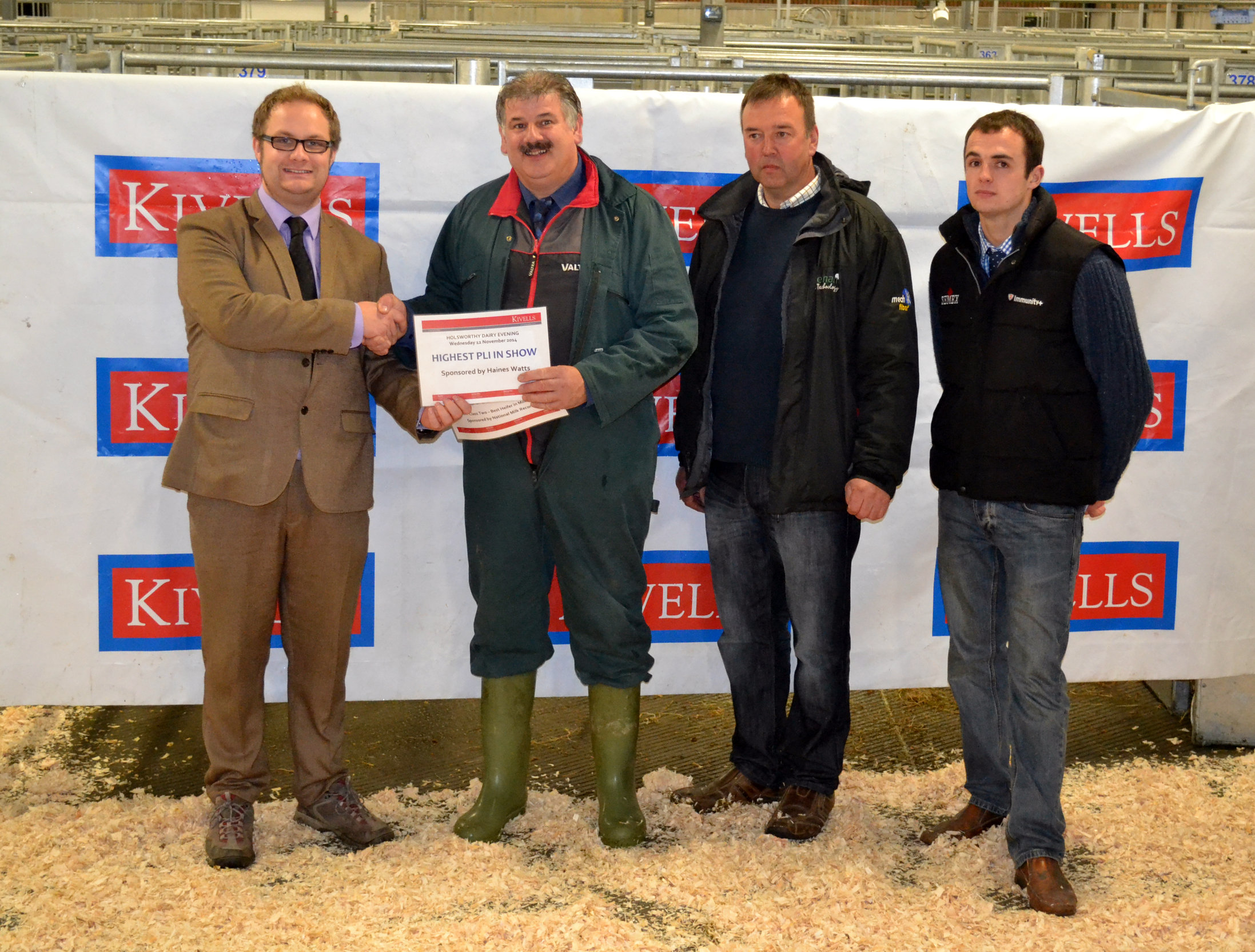 Jonathon Gifford partner at Haines Watts North Devon (part of the Haines Watts group, named as 'Accountancy Firm of the Year 2014') presented the award for 'Highest PLI In Show' to Adrian Burrows (vendor). The top call on the evening was £2,300 given for the Overall Champion and first place heifer of the show “Perrin’s Piano” a freshly calved homebred heifer sold on behalf of Messrs Hussell of Shebbear and purchased by the judge Len Bartlett of Honiton. The trade stands reported a busy night with a large attendance of dairy farmers from the Southwest and beyond.