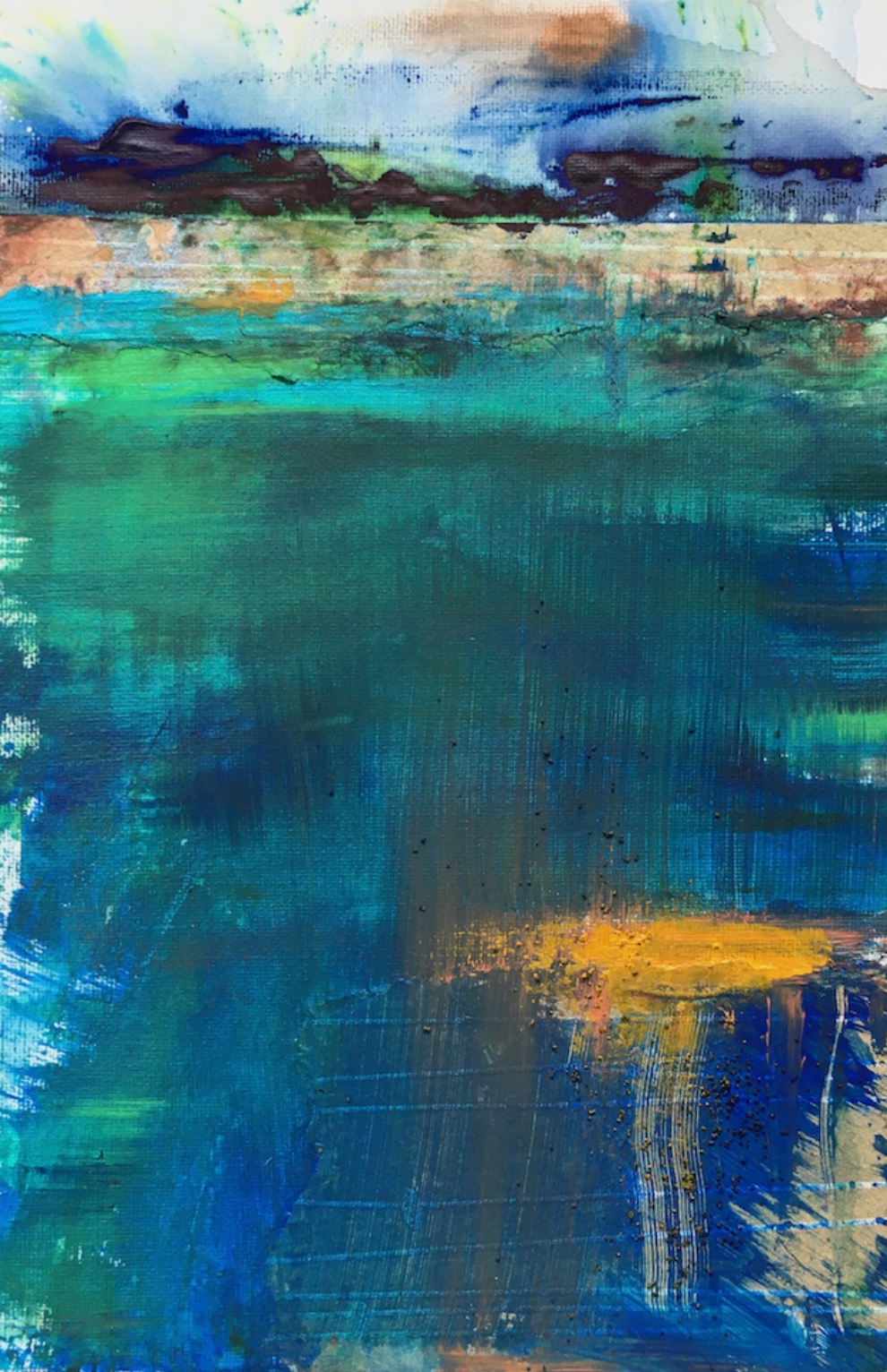Jayne says: “When people look at my paintings, I want them to feel the estuary and get a sense of the energy and power running through its layers. I think about the whole energy of a place and the elements of it that feed life- animals and plants. There is a whole energy beneath the estuary that feeds into this cycle of life. We are drawn to places because of their beauty but also it is energy that attracts us and it is this energy I try to harness in my paintings.”