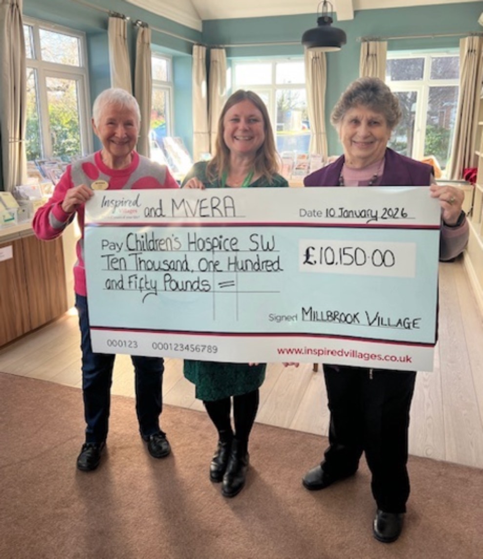 Millbrook Retirement Village in Exeter, owned and operated by Inspired Villages, has raised more than £10,000 for Children’s Hospice South West following a year of community-led fundraising by residents and staff.