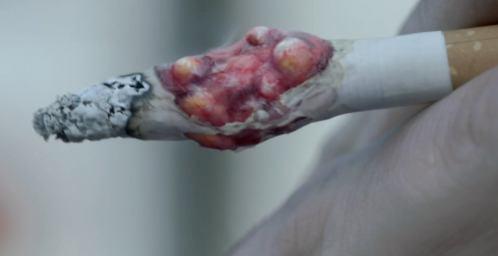 The new ads – featuring a tumour growing on a cigarette as it is smoked – are the first shock adverts since the “fatty cigarette” ad eight years ago.