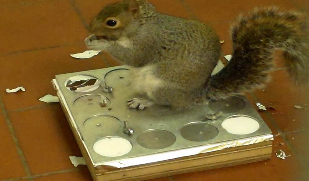 The five squirrels observed in the study (named Simon, Arnold, Sarah, Leonard and Suzy) were all given training prior to the task so they were proficient at using their paws or teeth to peel back the layer of paper hiding a nut inside the wells.