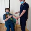 Television star, Caroline Quentin, received her COVID-19 vaccination at Moorhayes Commuunity Centre in Tiverton, and urges others to do the same.