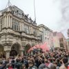 Like football royalty, manager Matt Taylor and club’s players then appeared on the Guildhall’s balcony (in restricted numbers at a time to avoid damaging it) to greet the large number of spectators gathered outside.