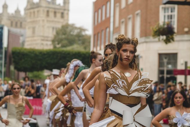 Students from Exeter College’s Art & Design faculty will be displaying creations made from recycled materials (12pm – 1:30pm), with first years presenting designs crafted entirely from paper, while second year students will exhibit pieces from upcycled garments. A giant screen behind the catwalk will display the ‘making of’ process, giving audiences an exclusive glimpse behind the scenes and capturing how the outfits were created.