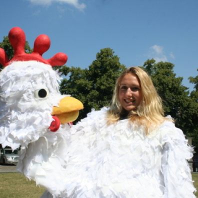 Devon broiler farmer Tamsin French has dresses s as a chicken called ‘Rosa’, and today embarked on a 39-day tour of the European Union. The 39Days4Rosa tour will take in 21 EU Member States and finish at the European Parliament in Brussels on September 8th.