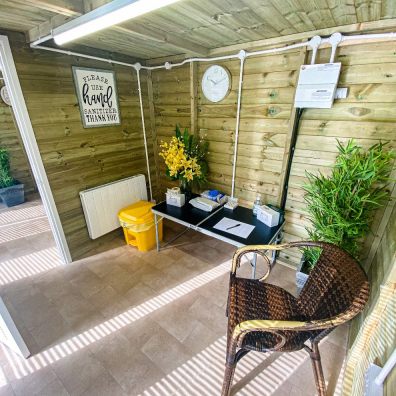 The garden building situated at the front of the Old Rectory Nursing home provides a peaceful place where families can take their lateral flow Covid-19 test and relax for half an hour while awaiting the results.