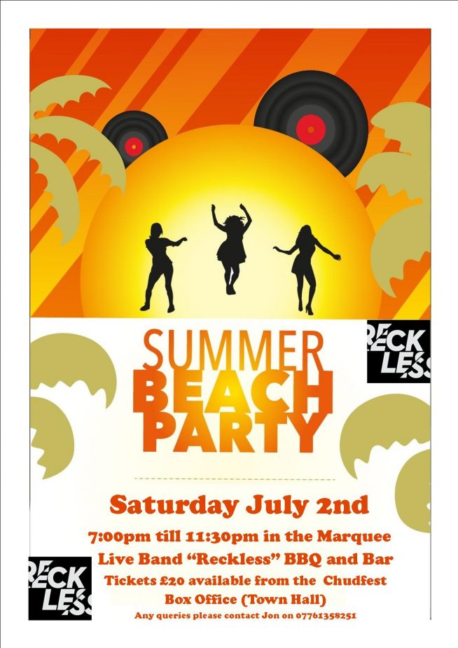 To open the revelry of Chudfest we are holding a Beach themed party in the Marquee, with the highly acclaimed live band “Reckless” providing a whole night of funkymusic to boogie to. There will be a tasty BBQ supper included in the ticket price and a fully licensed, reasonably – priced bar to help get the party going! Doors open at 7pm and the party finishes when the band stops playing. So grab your loudest shirt and your hula skirt and join the party.