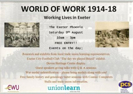 On Saturday 9 August a free event is being held in the Exeter Phoenix which explores the working lives of local people during World War One.