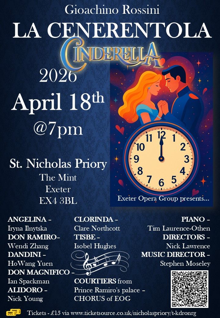 Exeter Opera Group is performing Rossini's belcanto masterpiece opera 'La Cenerentola' (Cinderella) on April 18th at St. Nicholas Priory.